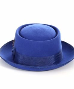 The Royal Blue Wool Felt Pork Pie Hat, a timeless accessory that combines elegance and style. Crafted from premium fur felt, this hat features a distinctive flat crown and a narrow brim, providing a sophisticated yet casual look.