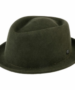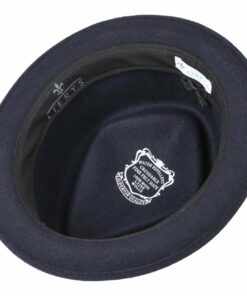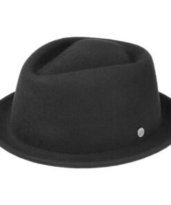 Timeless and with no-frills, this compact pork pie with diamond-shaped crown knows how to impress. The narrow-brimmed hat is made of crushable and water-repellent wool felt and will win you by its appearance and also its complete functionality. Entirely without grosgrain ribbon trim and brand pin, the small wool hat certainly has the makings of a classic.