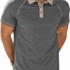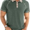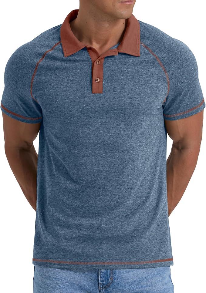 - Men’s raglan polo shirts features with polo collar, 3 button closure, subtle contrast stitching throughout, faux wood buttons, the contrasts will wake up denim and khakis.