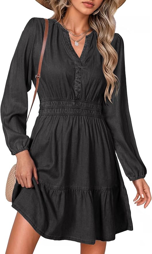 - Material – Denim dress for women is made of 65% loyocell, 24% polyester, 10% viscose and 1% spandex, super soft and lightweight to wear. Slightly stretchy, accommodated to different body shapes