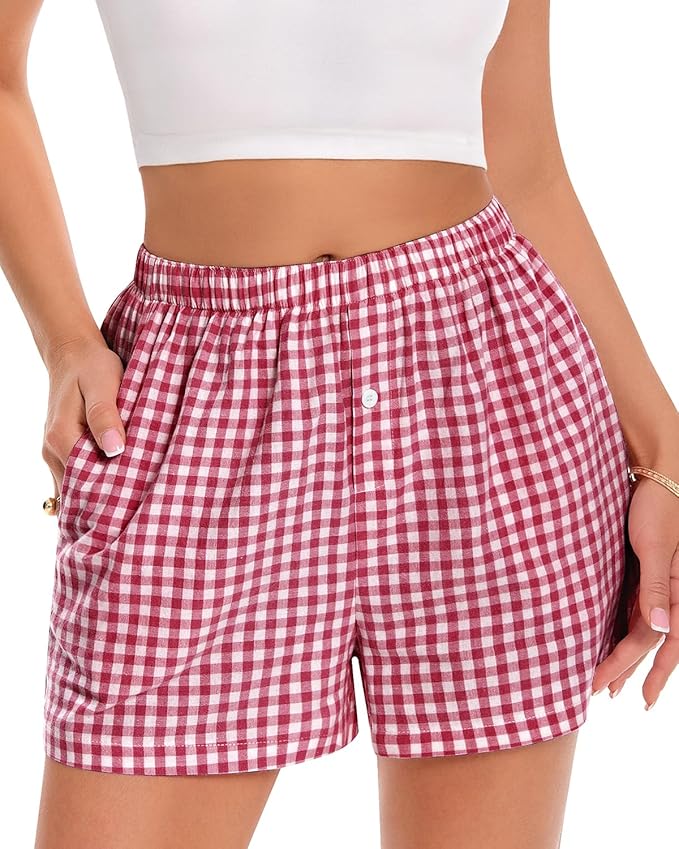- Material: Womens shorts are crafted with comfortable fabric, womens gingham pajamas are easy to wear and care for, cling too close or ride up awkwardly; Lightweight material allows for optimal airflow while maintaining a soft feel
