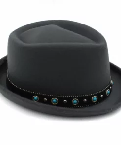 Classic Charm Pork Pie Fur Felt Hat in Grey, a timeless accessory that combines elegance and style. Crafted from premium fur felt, this hat features a distinctive flat crown and a narrow brim, providing a sophisticated yet casual look.