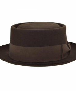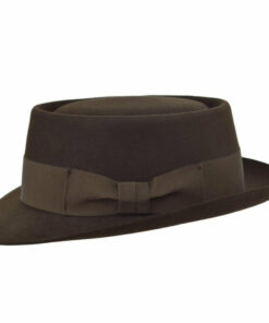 The Classic Pork Pie Fur Felt Hat in Brown, a timeless accessory that combines elegance and style. Crafted from premium fur felt, this hat features a distinctive flat crown and a narrow brim, providing a sophisticated yet casual look.