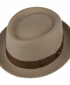 The ideal hat looks good and impresses with its comfort and ability to bounce back. This Italian-made pork pie hat in high-quality wool felt meets all these requirements. The felt hat owes its stylish appearance to the plain-coloured design and grosgrain ribbon trim above the smartly turned-up brim, which is held in place by a bow.