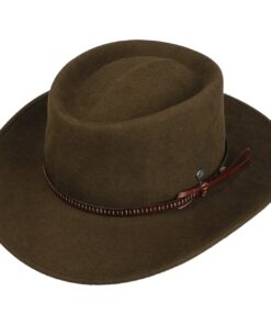 The strikingly decorated trim band of this Western hat immediately catches everyone’s eye. The fine vertical lines and the slightly protruding bow set an elegant accent and make the traveller hat a fashionable going-out hat for the city. Of course, the comfortable head covering made of 100% wool felt can also be worn while gardening or relaxing in the hammock.