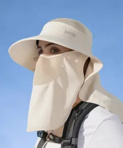 Elevate your sun protection game with our Detachable Face Mask Shawl Wide Brim Sun Hat featuring a convenient ponytail hole. This versatile hat combines fashion and functionality, offering you the option to shield your face with a detachable mask shawl while enjoying the wide brim coverage for ultimate sun protection. Stay stylish and comfortable on sunny days with this innovative accessory designed for your convenience.