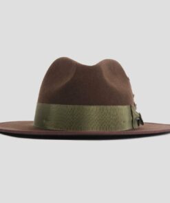 Our Elegant Felt Fedora Hat, featuring a wide satin ribbon band and feather detailing. This exquisite hat is crafted with attention to detail, ensuring both style and comfort. The interior boasts a premium two-tone leather sweatband and a fully satin-lined crown, providing a secure, comfortable, and luxurious fit. The felt material not only adds a touch of elegance but also offers durability and warmth. Whether you’re strolling the city streets or attending a special event, this felt fedora hat is the perfect accessory to elevate your look with its combination of sophistication and fine craftsmanship. Embrace timeless fashion and indulge in luxury with our Felt Fedora Hat.
