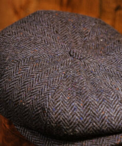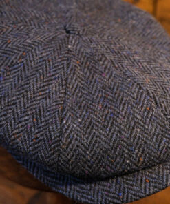 The “Eight Piece Navy Donegal Tweed Newsboy Cap”, a timeless accessory that exudes classic charm and sophistication. Crafted from high-quality tweed wool fabric, this cap combines durability with style, making it a versatile addition to your wardrobe.