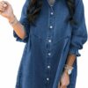 - Sexy summer denim jeans mini dress with loose style,ruffles,buttoned down,smocked 3/4 long sleeve design add stylish aesthetic