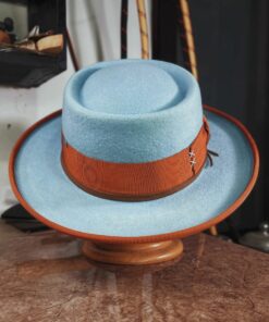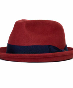 The Red Wool Felt Pork Pie Hat, a timeless accessory that combines elegance and style. Crafted from premium fur felt, this hat features a distinctive flat crown and a narrow brim, providing a sophisticated yet casual look.