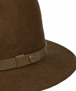 Plain-coloured wool felt gives this traveller hat a smooth feel, which is completely unaffected by the vagaries of the weather. The felt hat keeps rain showers at bay with its water-repellent finish, while you get to enjoy shade under the brim when the sun is shining. Even crumpling does not impair the beauty of this outdoor hat with colour-coordinated leather trim.