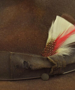 With an inner band made of soft leather and a feather accent, this Fedora exudes sophistication and timeless style. The inner lining ensures comfort, while the antiqued dusty finish adds a touch of vintage charm. Please note that as each hat is handcrafted, the antiquing results may vary, making each piece truly one-of-a-kind.