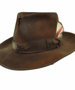 100% Wool Felt Superior Quality Fedora Hat, meticulously crafted with attention to detail, making each piece unique due to its hand-antiquing process.