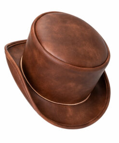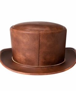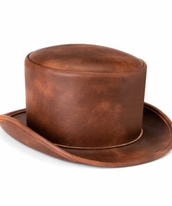 Our Leather Brown Top Hat, a unique and stylish accessory that blends sophistication with a touch of rugged charm.