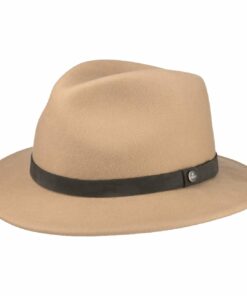 This traveller hat is well-equipped to deal with the cold and rain: It owes its warm wearing comfort to the supple, robust felt made of processed wool, while it defies the rain and damp conditions with its water-repellent properties. A crushable finish makes the felt hat a practical and comfortable companion for outdoor activities, which looks stylish with outfits thanks to its monochrome, narrow, contrast-coloured leather trim.