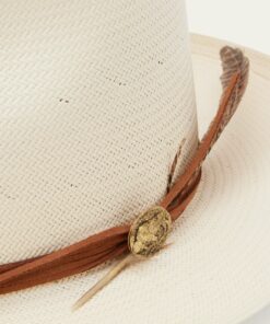 The RegalSkyliner Straw Fedora is crafted with a firm finish from high-quality straw. It has a 4 1/2″ pinch front crown and 3″ brim, accented by a 4 tiered rawhide hat band with removable feather detail. A bonded cotton sweatband ensures proper fit and comfort. our straw hats are made to stand the test of time.