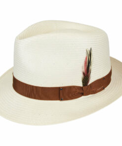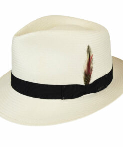 Made from 100% Shantung Litestraw, this hat combines quality craftsmanship with a lightweight feel, ensuring maximum comfort throughout the day. The 2 1/2″ brim and 4″ center dent crown create a timeless silhouette that is both sophisticated and versatile, making it a perfect addition to any wardrobe.