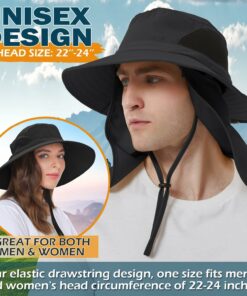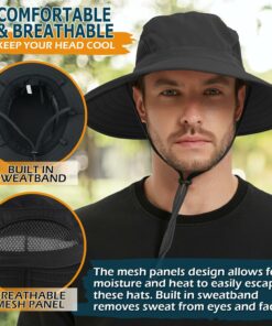 Versatile and stylish bucket hat designed for outdoor enthusiasts! With an adjustable size and chin strap, it fits most head circumferences (22-24 inches) comfortably, ensuring it stays secure even on windy days. The breathable two-side mesh vents enhance airflow, keeping your head cool, while the built-in sweatband helps absorb moisture.
