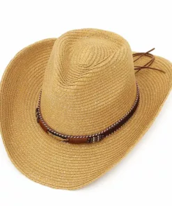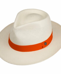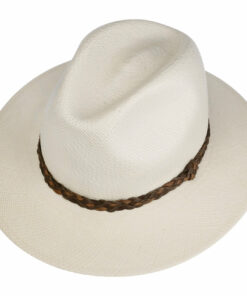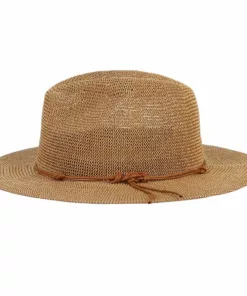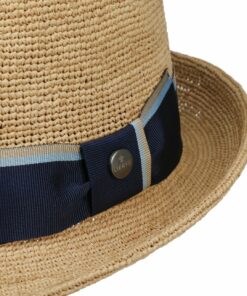 Made from 100% straw, this hat has an attractive crochet look and fits harmoniously into the summer leisure wardrobe. The chic hat can be flexibly combined with a linen suit or jeans and a T-shirt. A wide denim-look trim band with a contrasting braid gives the Italian-made straw hat a particularly casual look.