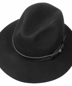 Die-hard hat fans naturally do not want to forgo their favourite accessory when the weather turns unpleasant.To protect the head right down to the ears, you have this monochrome Traveller which is made from premium-quality wool felt, bestowing warm comfort. Thanks to extensions on the side, your ears are also protected and the water-repellent properties of this crushable felt hat keep your head dry.