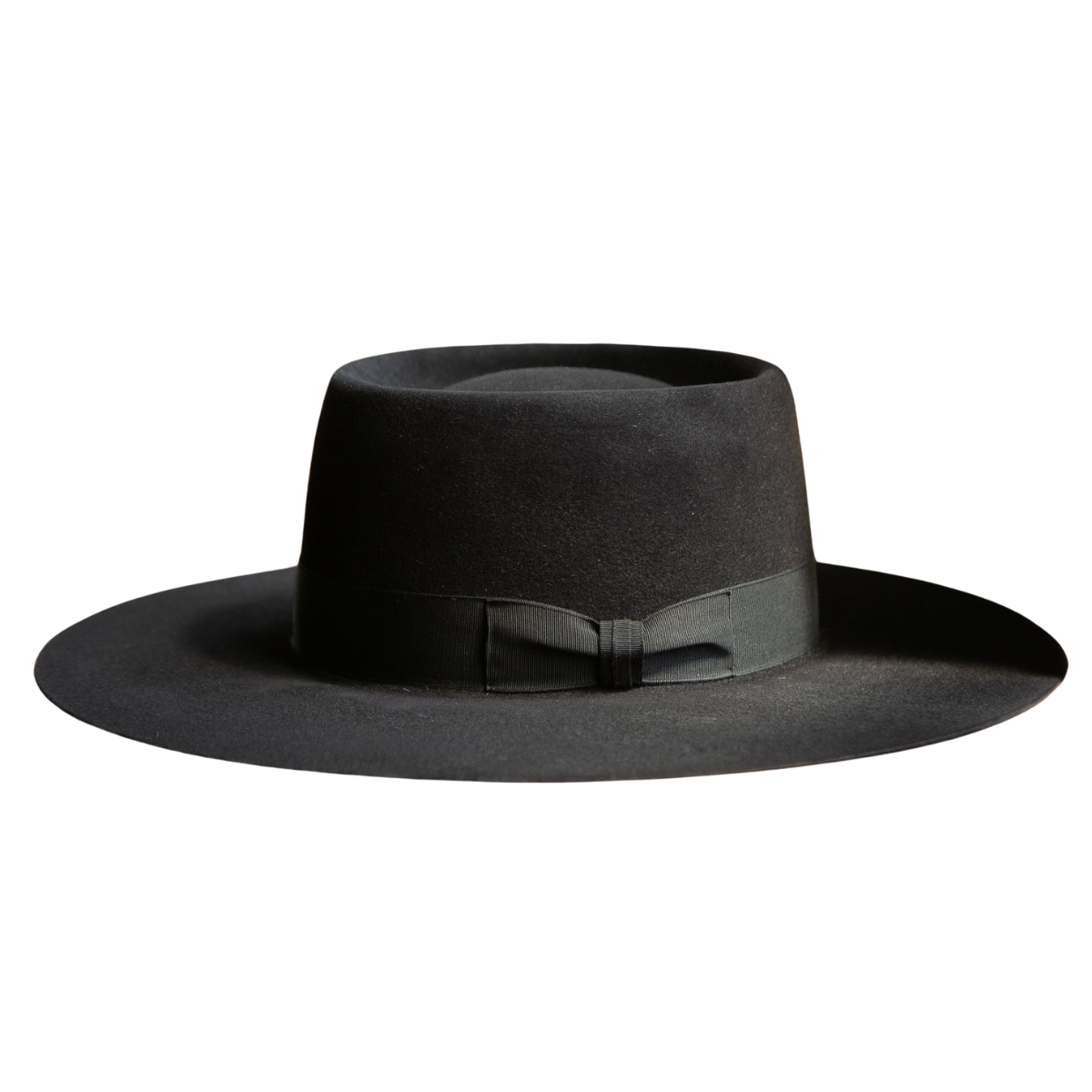 Inspired by the western hat worn by Clint Eastwood in the 1992 film Unforgiven handmade to order.The hat is designed with structured (stiff) brim with a bound edge,which luxurious product is made of 100% sheep wool and has a water repellent coating.