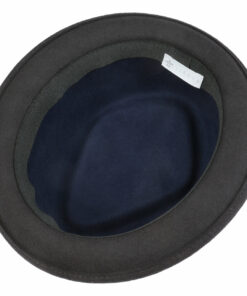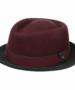 This pork pie hat combines two strong colours in a trendy two-tone look. The brim contrasts starkly with the crown, while the double layer of grosgrain ribbon trim picks up on the colour scheme. With its turned-up brim, diamond-shaped crown and typically jaunty finish, this hat rounds off casual outfits and looks just as good strolling around town as it does when visiting your favourite club.
