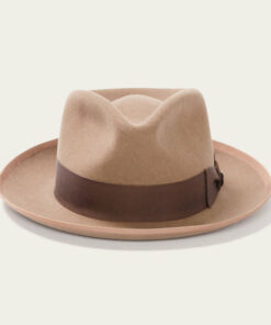 This beautifully crafted, vintage-style fedora is made in the USA of high-quality frim wool felt. Its iconic profile features a classic 4 1/2″ pinch front crown, with a sophisticated 2 3/8″ bound edge brim and a wide grosgrain sweatband. The interior includes full satin lining and genuine cowhide sweatband.