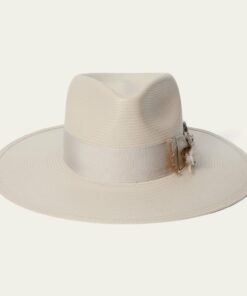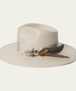 Embark on bold adventures with our Wild Frontier Straw Fedora. This statement hat features a wide 4-inch brim and a tall 5-inch crown, crafted from rich shantung straw with a firm finish for durability. The large tied hat band adorned with an oversized feather adds a touch of Western charm to your look.