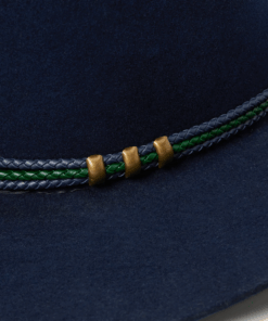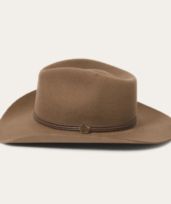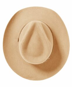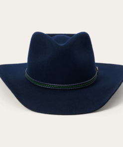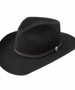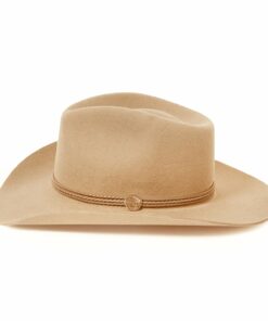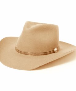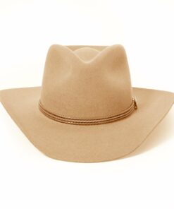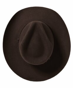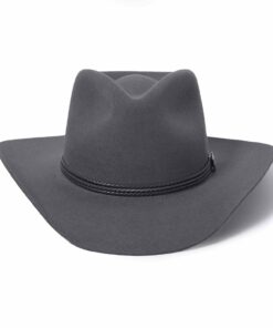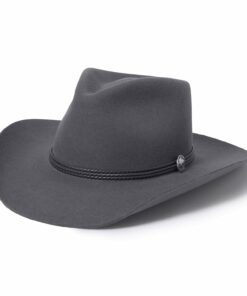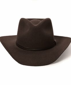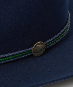 Handcrafted from high quality wool felt for a sturdy finish and unique style. It has a 4 1/4-inch pinch crown, 3 1/4-inch brim, and a three-cord braided leather hatband with buffalo nickel pins.